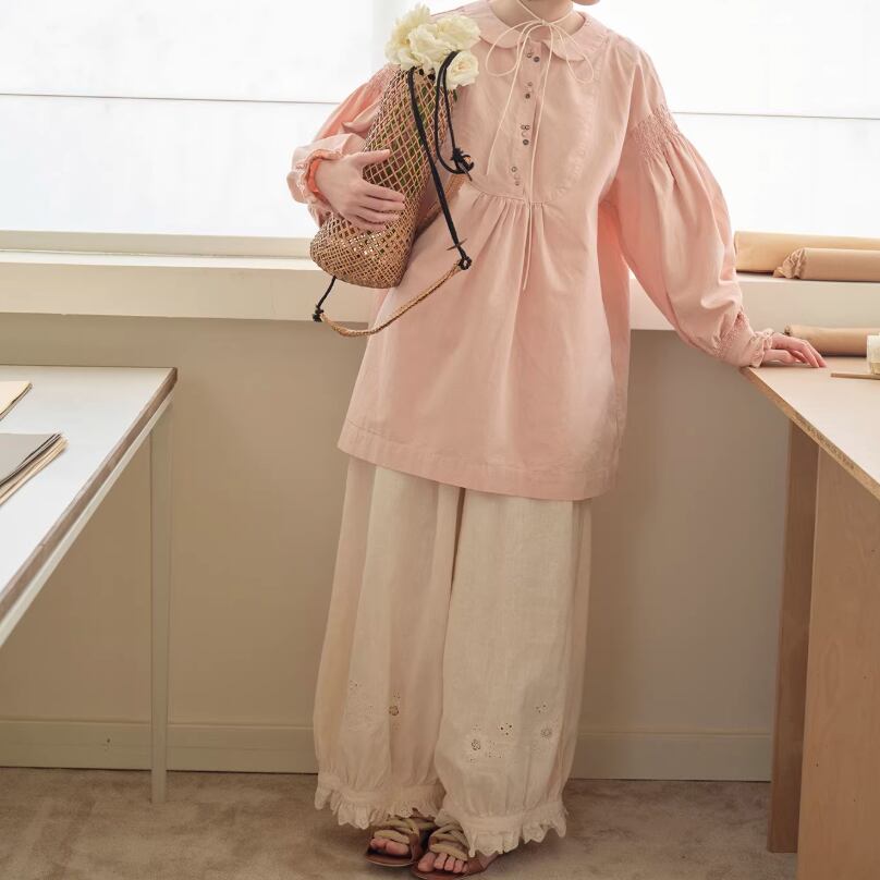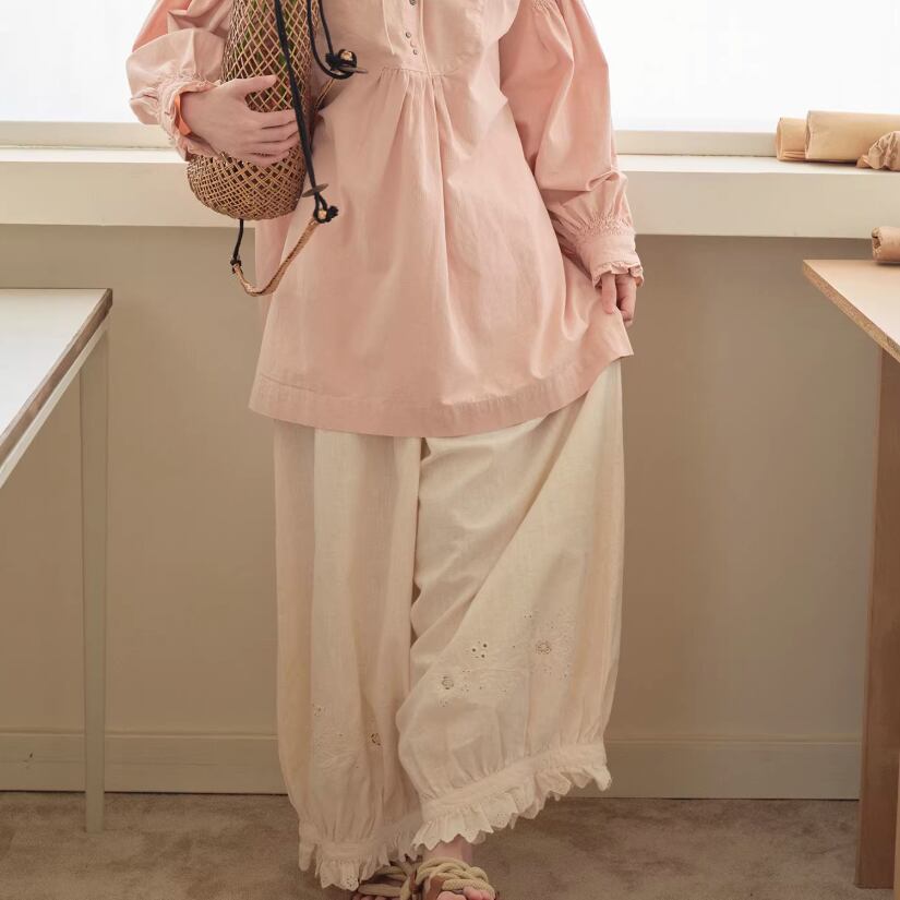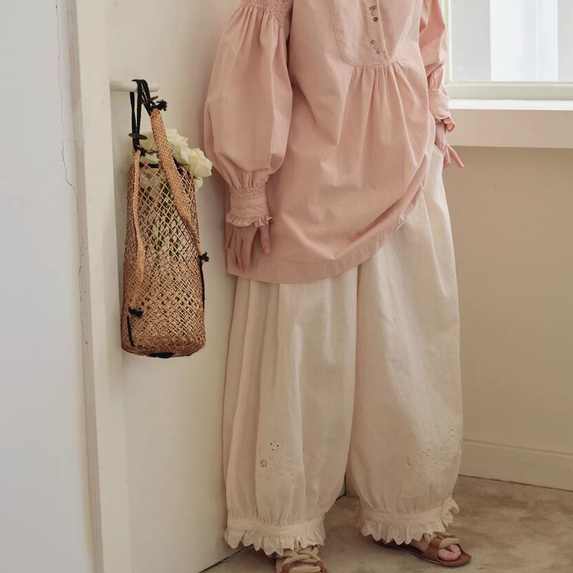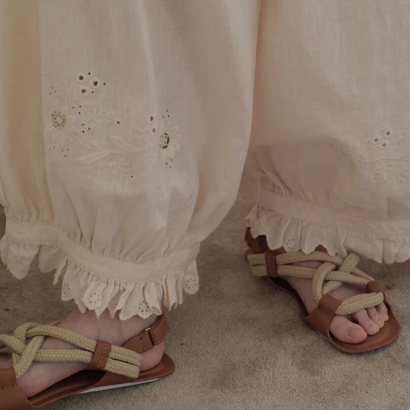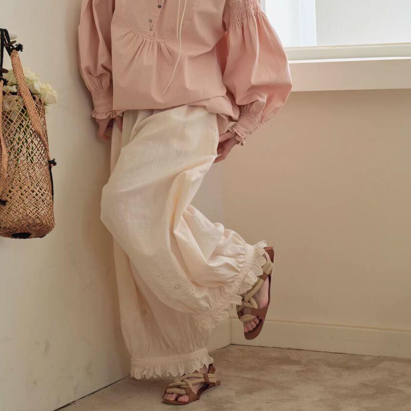2色/裾フリルデザイン刺繍パンツ ・7790