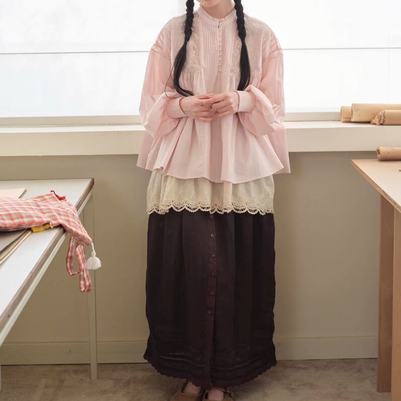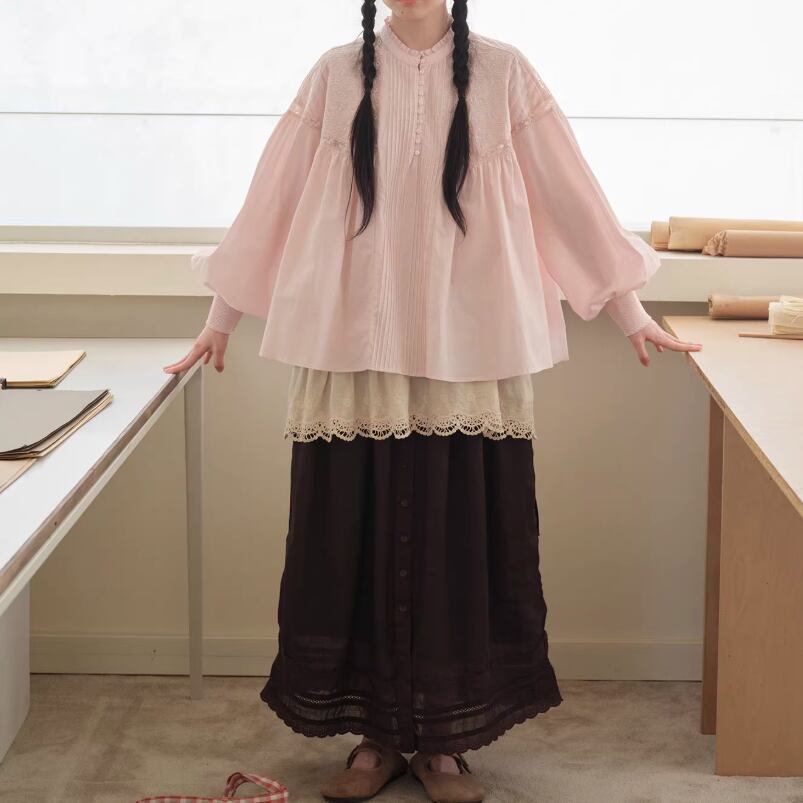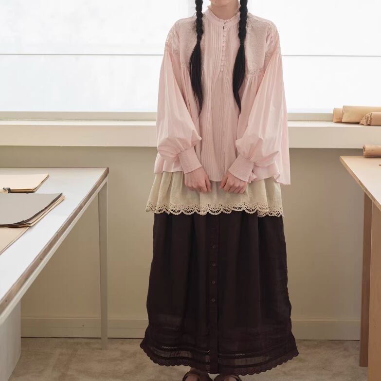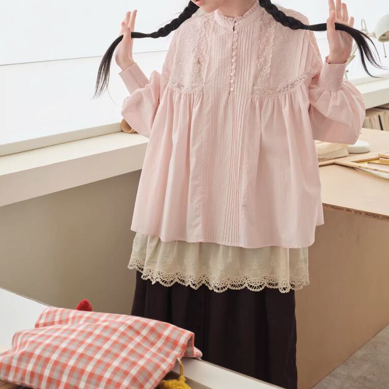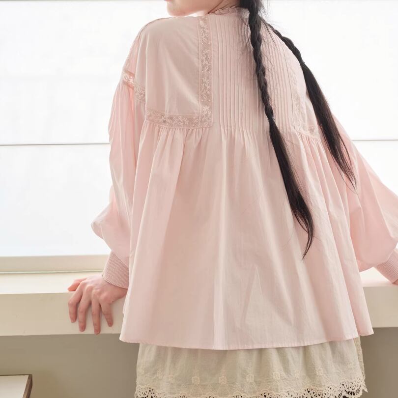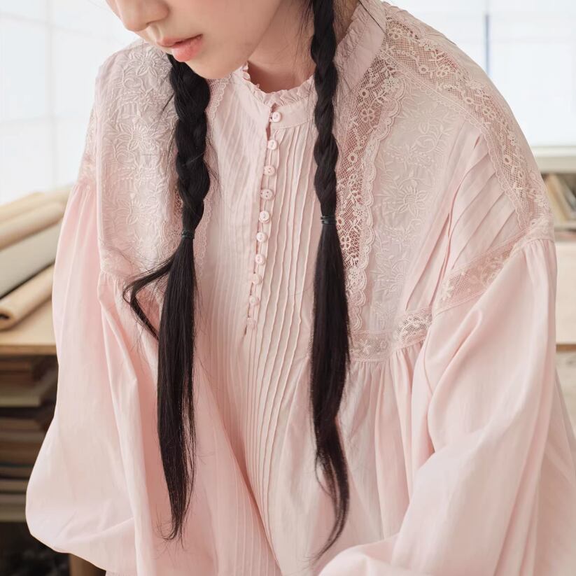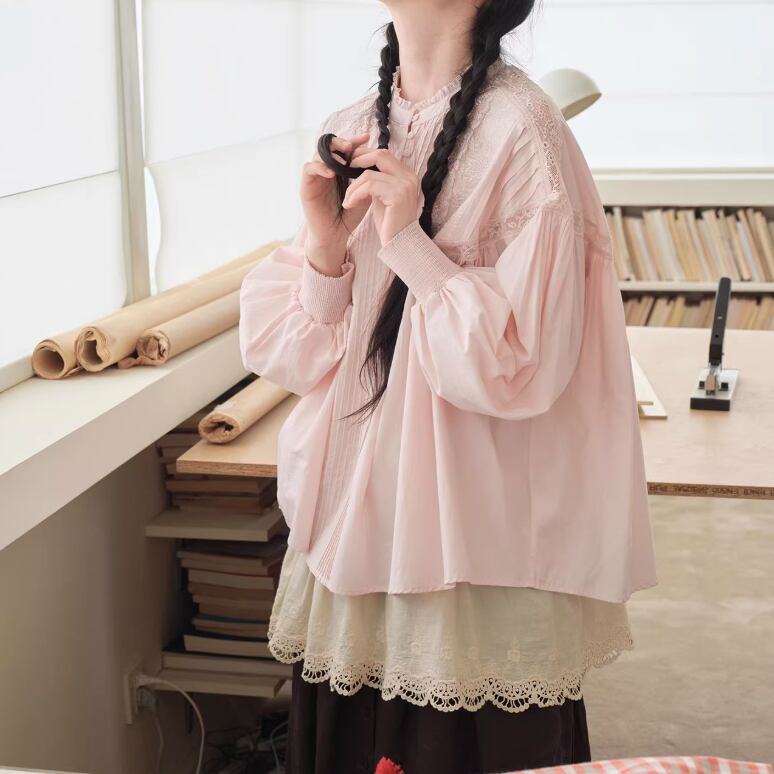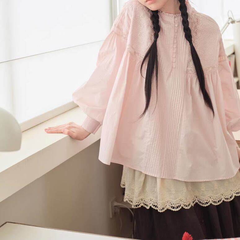 3色/レースネックコットンブラウス ・9297