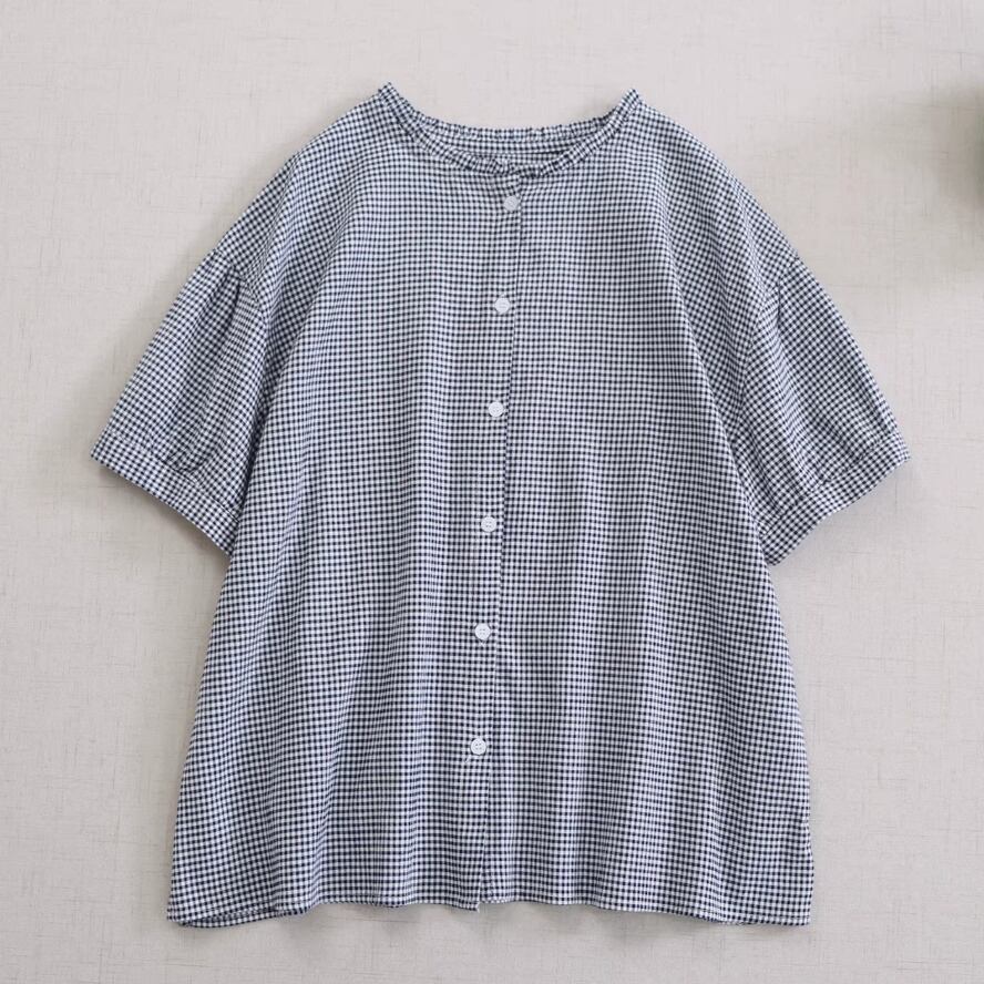 3色/裾フリルチェック柄ブラウス ・9689