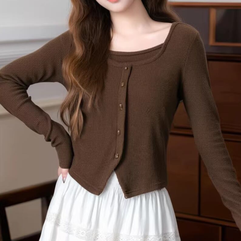 2色/Wレースカラーボタントップス ・4178