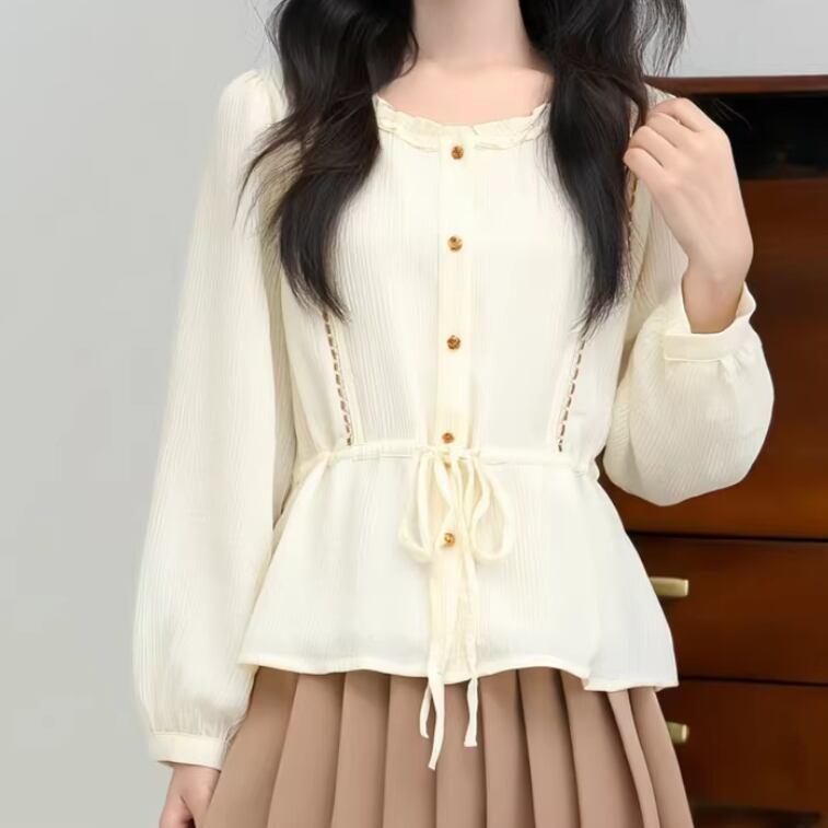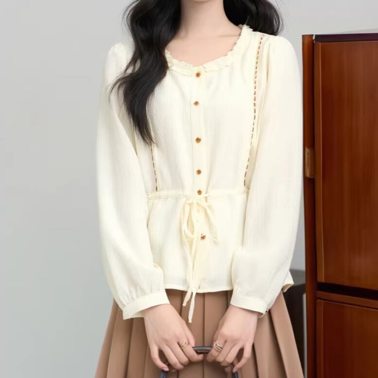 2色/Wレースカラーボタントップス ・4178