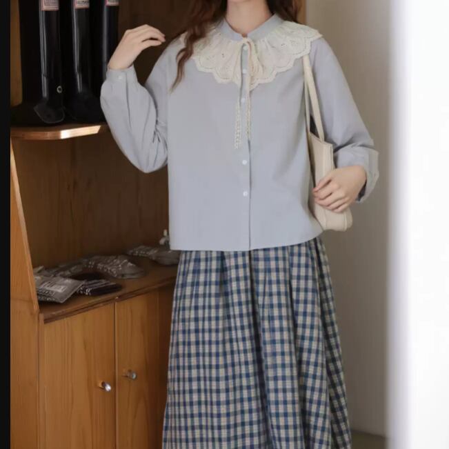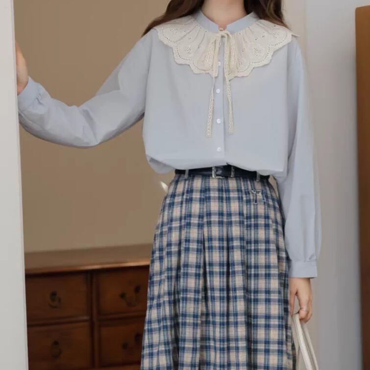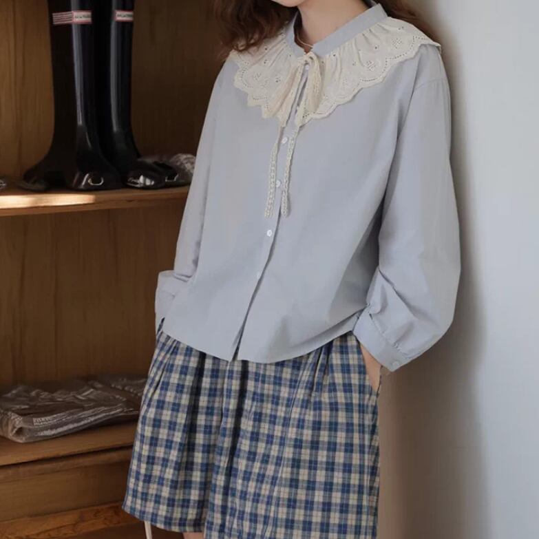 3色/レースネックコットンブラウス ・9297