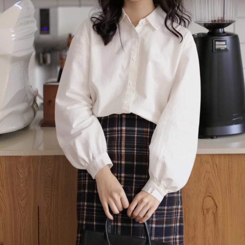 3色/裾フリルチェック柄ブラウス ・9689