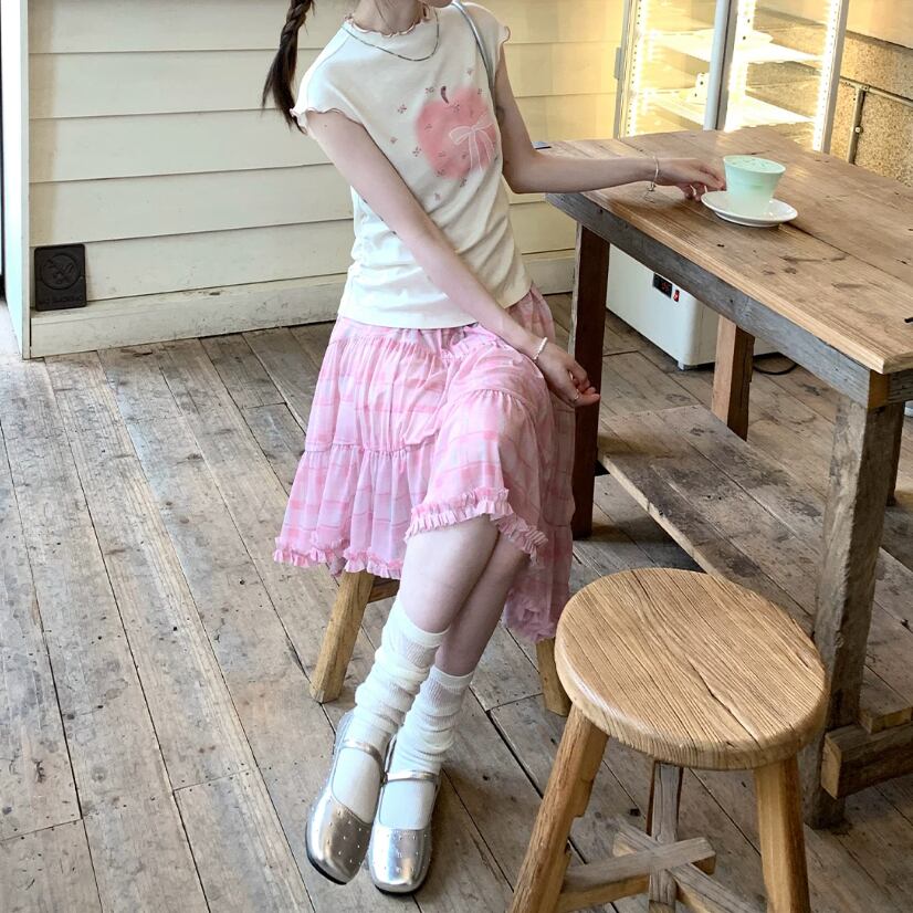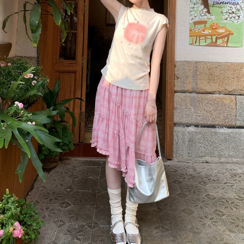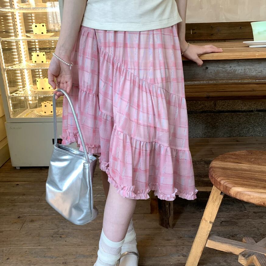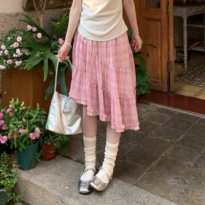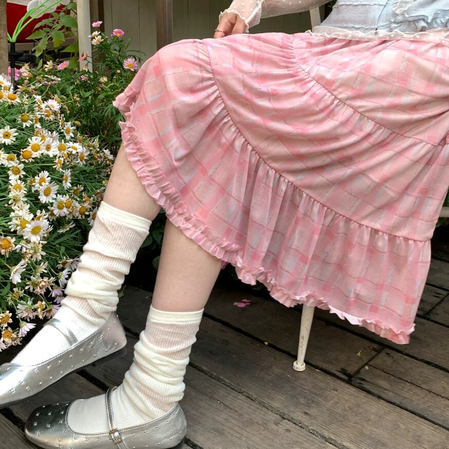 チェック柄チュールレーススカート ・10456