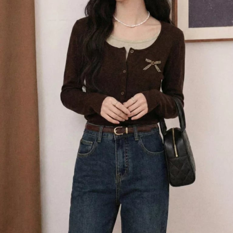 2色/Wレースカラーボタントップス ・4178