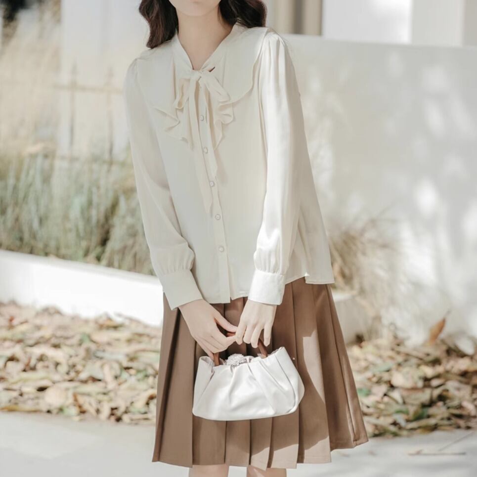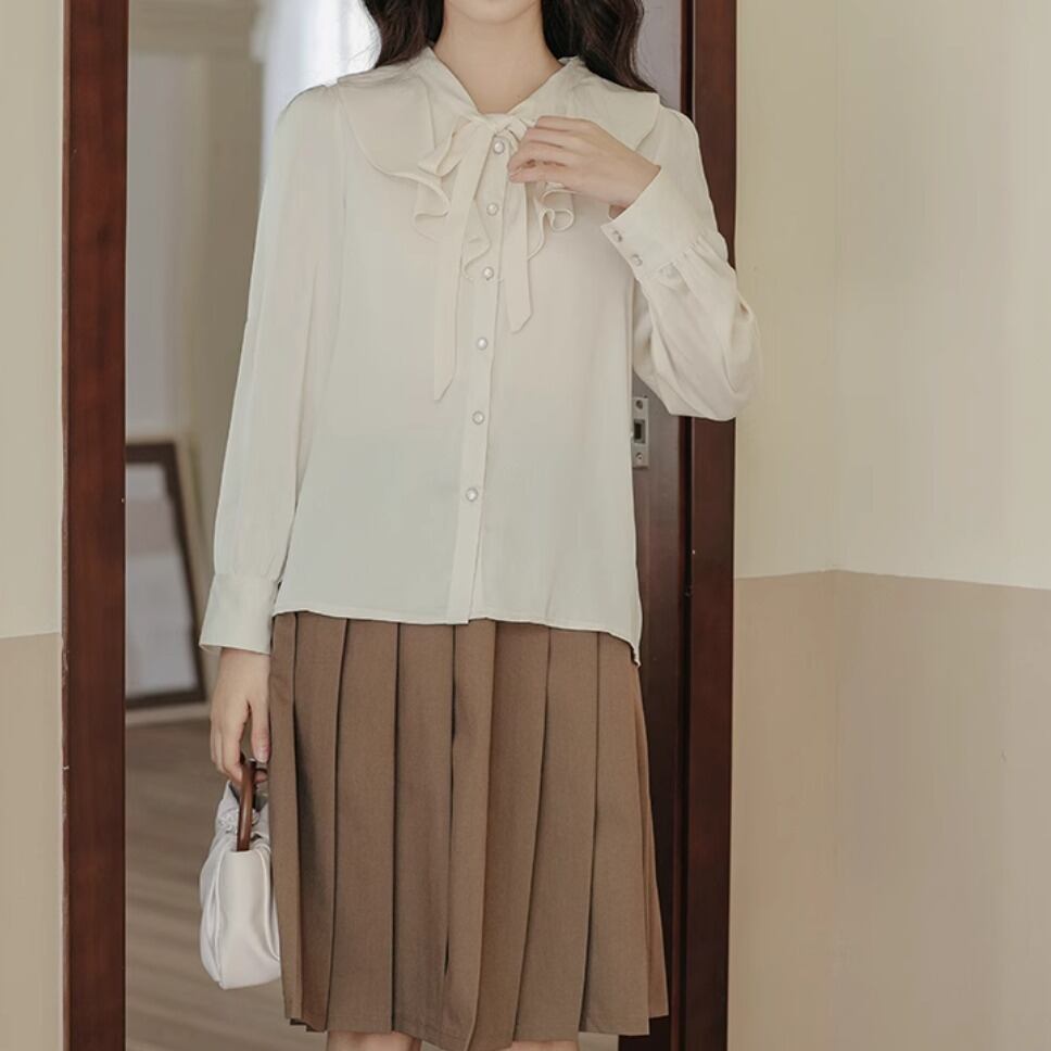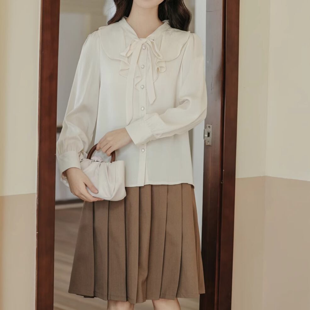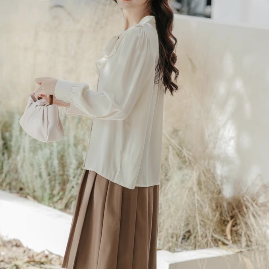 ラウンドネックレトロチェック柄ブラウス ・8142